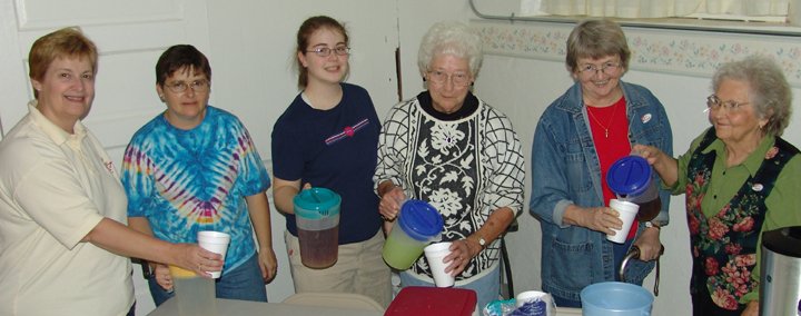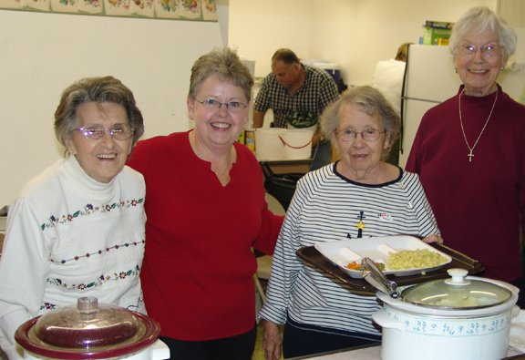 Servers at the Media Chicken and Noodle supper from left are Pastor Pam Moore, Leora Magner, Sebeth Magner, Evelyn Palmer, Norma Lee Bigger and Lois Ann Davis.