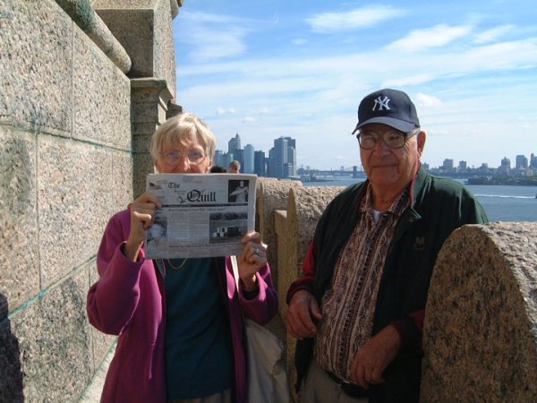 The Quill traveled to New York City last week with Bill and Virginia Ross of Stronghurst at the Statue of Liberty. "People were friendly; the city was fast-paced; and New York Cheesecake is incredible," they reported. (Take The Quill with you as you travel, take a picture, and let's see where all The Quill will go.)