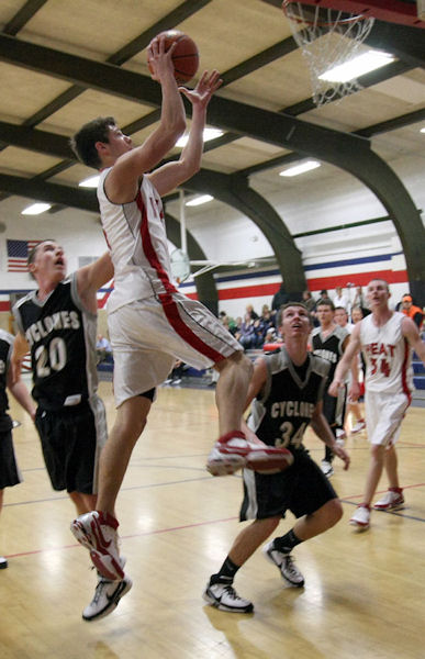 Kyle Gugeler gets off another good shot. Kyle was high scorer for the Heat.