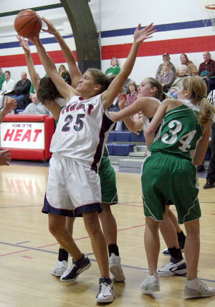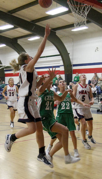 Rachele Jack, high scorer with 32 points, tips another one in for the Heat.