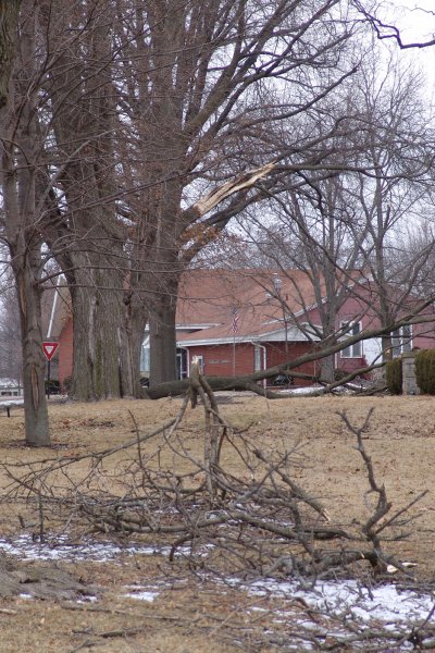 Another time Joyce heard a loud noise at James Kelley's when snow came off their roof. There was lots of racket." The Hetricks had branches that fell on their dog kennel, and she could see downed wires on a house.