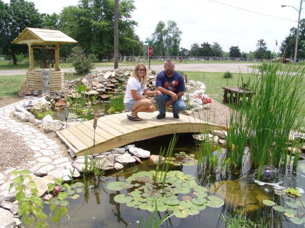 The expansion of her ponds came about after Jim's mother Mary Moyers, recently passed away of health problems in her 50's. She was dear to their hearts and after she was cremated, her ashes were put around a newly planted tree in their yard. She dearly loved the sounds of the water falling over the rocks so they decided to expand the pond closer to where her ashes are.