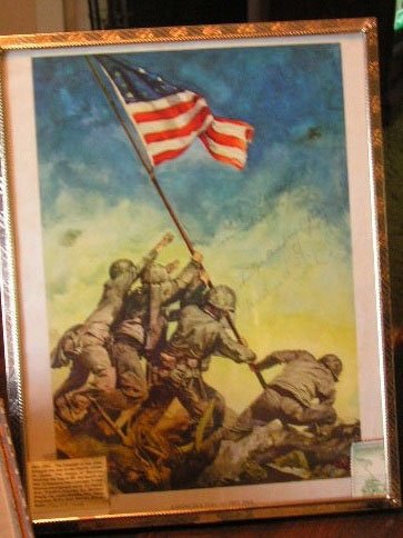 It was during this bond tour that Earl Shackelford met Rene Gagnon and John Bradley, two of the men in the flag raising at Iwo Jima photo and they each signed the photo for Earl.
