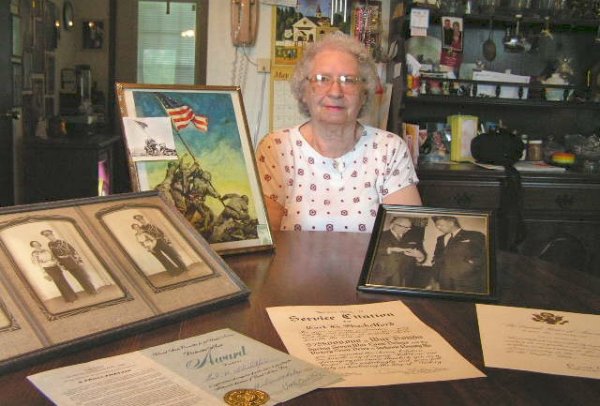 It was during Earl Shackelford's position as State Director of the Defense Bonds Division that Earl got the privilege to meet two of the US Marines in the famous photo of the raising of the US flag at Iwo Jima.