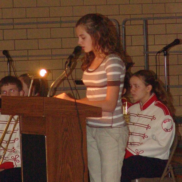 Gretchen Higgins, student council co-president read "The Story of Taps." Eric Hilligoss and Tyler Anderson played the moving rendition of "Echo Taps."