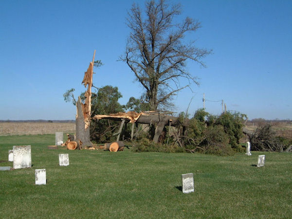 In one of the oldest cemeteries in the county (Watson on the Olena Road), the venerable old white pine tree, a landmark for over 150+ years, crashed to the ground in last week's strong wind.