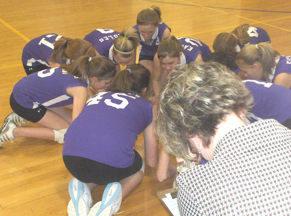 The Eagles regained the ball with the help of some of their excellent defensive moves, which held the Mustangs at bay. The Eagles then broke loose with an 8 to 3 lead and continued to increase that lead at the first time out, with a score of 12 to 8. Macomb quickly retaliated with a 13 to 12 score, edging the Eagles slightly. Evenly matched, each team went into drive with a 24 to 23 score, giving La Harpe a slight edge. Macomb matched that point, making the game a tight score of 24 to 24 with the game point close at hand. La Harpe came out on top with a 25 to 24 win over the Mustangs.