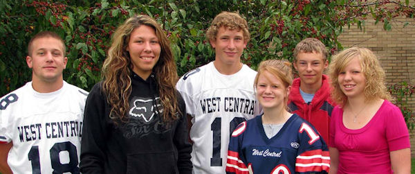 West Central 2008 Homecoming Attendants from left to right: Junior escorts for Homecoming 2008 are Brandie Pullen and Colton Smith; Sophomore escorts selected by their class are Hillary Pence and Zach Shinberger, and Freshmen escorts are Ali Postle and Austin Bigger.