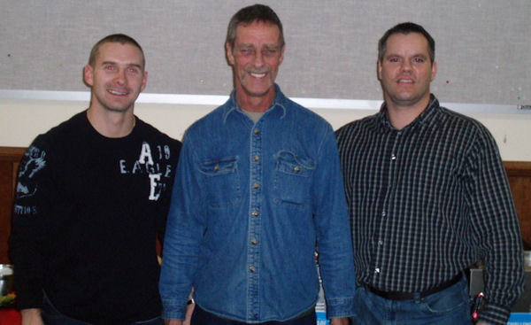 From left to right-Cpt. Lanny Finn, Commander, Battery C, 2nd Battalion, 123rd Field Artillery; Staff Sgt. Norris Crooks, and 1st Sgt. Joseph Bratcher. Members of the Galesburg-based unit celebrate Crooks' time in service during a retirement party on Jan. 10 in Galesburg. Crooks officially retired on Jan. 19 after nearly four decades of service to his country.