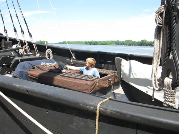 Several were disappointed to see the ships without their large sails out, but it was due to the upstream journey and strong current they were fighting as they traveled from Keokuk, Iowa that morning (using a diesel motor - a necessary addition for this traveling museum).