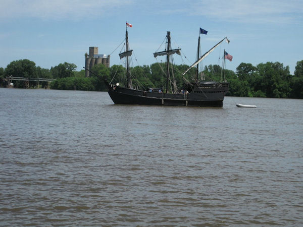 As a stronger than usual current slapped water up against the rocky riverbanks of the historic Mississippi River, a nice gathering of patriots, young and old, anxiously looked off in the distance, waiting to capture the first glimpse of two historic replicas that eventually were responsible for each of them being on the shores of a free America.