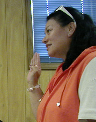 Leota Caldwell was sworn in on Monday, June 7th, as a village board member, replacing Mike Nelson, who resigned when he was hired as a full time employee of the village.