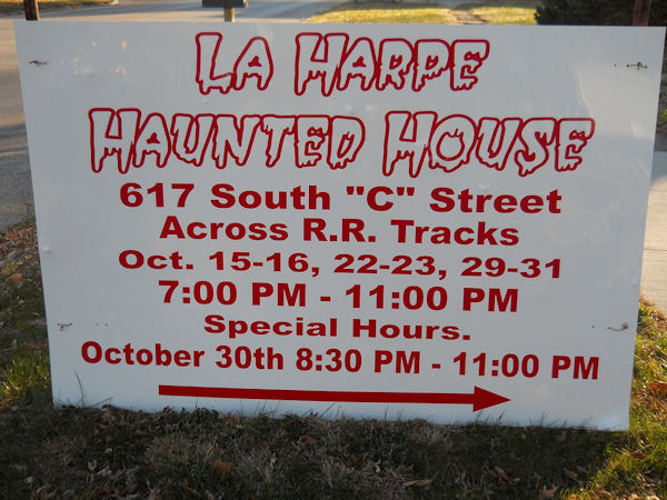 Several were asking when they saw this sign, "Who is sponsoring the La Harpe Haunted House?"