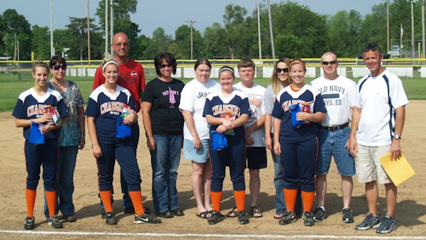 Illini West held their Senior Recognition Day for the Illini West Chargers softball girls' team this past Saturday, May 6th just prior to their game. From left to right are: Jenni Bowman daughter of Connie Bowman, Kayla Dickson, daughter of Shana and Gary Jackson, Courtney Graves daughter of Monalisa and Tim Graves, Ashley Kerfoot daughter of Amy and John Tanner, and Coach Andy Gronewold from Carthage.