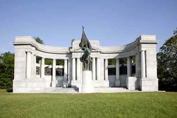The monument, a peristyle Doric order temple featuring an equestrian statue on its platform, was originally dedicated on November 15, 1906. The Iowa legislature authorized the expenditure of $320,000 to restore the monument in 2012.