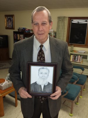 Harry Miller, La Harpe, holds a photo of Thomas Jefferson Lincoln, sketched from a tintype. Miller worked for 1-1/2 years on the Lincoln research. - photo-by Dessa Rodeffer/Quill Publisher-Owner