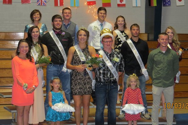 Front row left to right: 2014 Homecoming First Attendant Chauntel Vance; Crown Bearer Myah Shutwell; 2015 Homecoming Queen Jenna Bryan and King Christian Peacock; Crown Bearer, Charli Wiseheart; 2014 Homecoming King Jacob Sholl