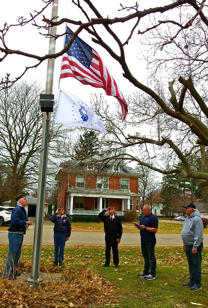 On a blustery Monday, Stronghurst Village officials and American Legion members raised the state's 2017-2018 Illinois Bicentennial Flag to kick off the state's year long 200th birthday celebration. Conducting the ceremony was Stronghurst Mayor Brendan Schaley with veterans and legion members Jim Blender (US Air Force Korea 54-58), Norm Menzenberg (US Air Force Vietnam and was in Air National Guard 63-69), Ronald Schaley (US Army Germany 61-70), and Bruce Caldwell (US Navy San Diego and Pearl Harbor 71-78). (See pages 4-5 for the first of a Bicentennial series about our state's rich heritage.)