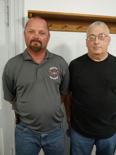 Lynn Hoyt (left) standing with the La Harpe City Chief Police was hired as part time police officer Monday evening.
