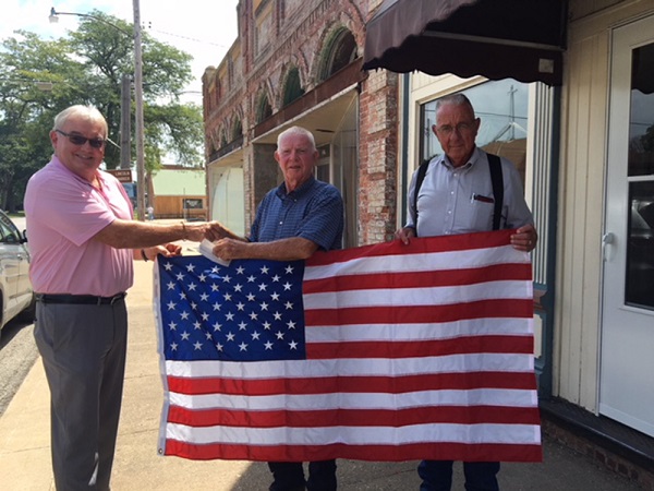 On behalf of 42 sponsors and 120 participants of the Old Glory 5KRun/Walk, Jay Jones of Jones Insurance Agency of La Harpe presents Masons Bill Burt and John Louden a check for $4,665.00, to be deposited in the Masons' Flags on Main Street fund at the Fortress Bank. The Masons were delighted at the gift and Jones was appreciative to everyone who helped make this a success!