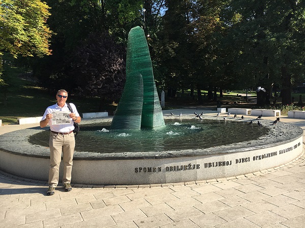 Ron Grotheer of Washington D.C., while doing work at the American embassay in Sarajevo, Bosnia, took "The Quill" along to the moving Wartime Memorial for Children which is located in Sarajevo. It is a monument of childhood, disrupted by war and remembers the 1600 children who were killed during the siege in Bosnia. It is a moving tribute and located near the museum that shows proof of the genocide and torture that was going on 1992-1995....absolutely horrendous and heart-wrenching stories. One writer said, "There is a new generation of school-aged, post-conflict Bosnian kids who want to know what happened during the war. And maybe the first history lessons that resonate with them won't come from partisan school rooms or red-faced politicians on the television news. Maybe they'll come from a field trip to a small museum on Logavina street. Maybe the image they'll take home to their parents will be that of a little boy and girl, staring upwards at an unusual balloon. A symbol of hope, drawn from horror.