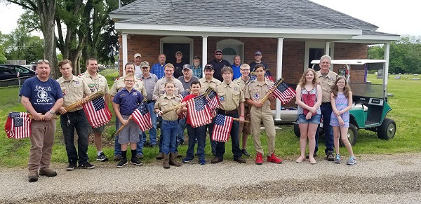 Local Oquawka U.S. Veterans, volunteers and scouts from Boy Scout Troop 61 placed flags on veterans graves buried in the Oquawka cemetery. in their honor for Memorial Day.
