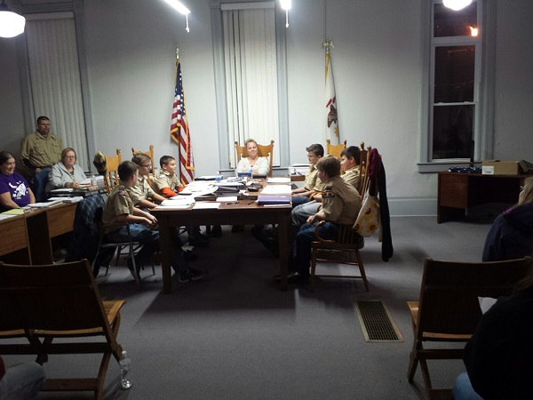 Boy Scout Troop #138 were present to do a mock agenda on a city issue. The Boy Scouts chose to discuss a hole in front of the Post Office where the dirt had settled after some water piping had been done.