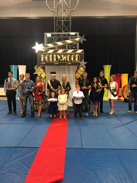 Back row (L-R): 4th Attendants: Josh Sanderson and Paige Gutting; 2nd Attendants: Carter Willdrick and Neveda Gittings; King and Queen: Hunter Boston and Taylor Pence; 1st Attendants: Isaac Schreacke and Olivia Clark; 3rd Attendants: Logan Little and Morgan Broadwell