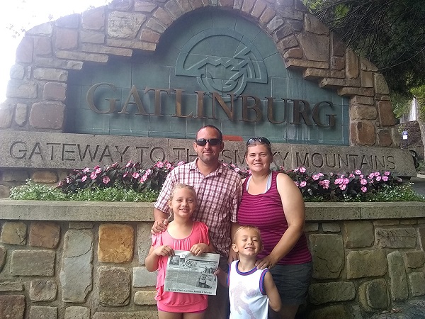 Kyle and Jessica Klees took "The Quill" along when they took their children Kelse and Kaleb to Gatlinburg, TN and Pigeon Forge, for a family camping vacation in August. They had always wanted to take the kids to see the mountains and finally got an opportunity to this summer. They are standing in front of the Gatlinburg monument "GATEWAY TO THE SMOKY MOUNTAINS".