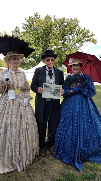 Suzanne Chilton, and Mr. and Mrs. Gary Meyer (Sara Nimrick) of rural Stronghurst took "The Quill" along to the annual Galesburg Heritage Days "Civil War era" in August. Dressing for the event was quite the production with hooped skirts, straw hats, buckles & grosgrain ribbon belts, all hand made and purchased along with lots of dress fabric sewn into beautifiul era dresses by Suzanne from period patterns. Suzanne commented how she loved remembering the details of days past (and present!). Suzanne's late husband Dan was a former Superintendent of Highways for Henderson County back in the late 70's and lived in Stronghurst. When you go on a trip, take "The Quill" along, and have your picture taken with it, and send it to us. Let's see where all "The Quill" can travel.