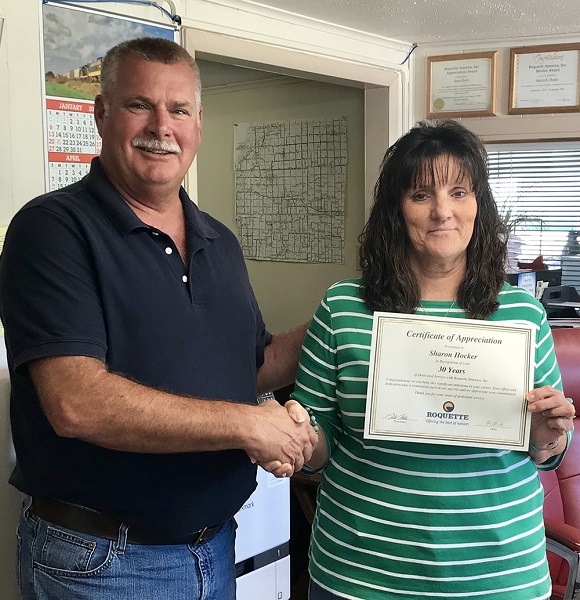 A steady stream of farmers, friends, family and past co-workers arrived at the La Harpe Elevator (Roquette Elevator) Thursday, March 12th, to give their best wishes to employee Sharon Hocker on her retirement and to thank her for her dedication and friendship after more than 30 years of working at the business.