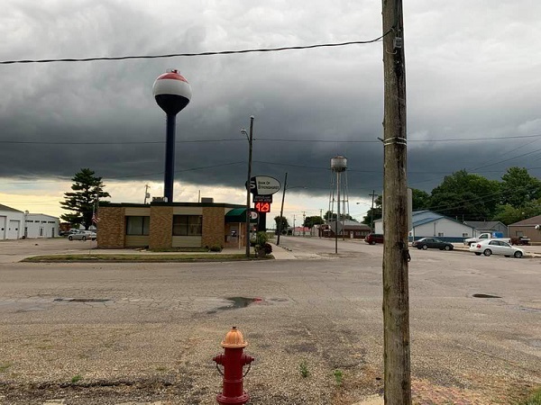 The damaging winds that went through West Central Iowa from Nebraska and into Illinois did most of its damage along Interstate 80. But the gust front rolled over Henderson and Hancock County, luckily only bringing some rain aftrer it quickly rolled through. This "Gust Front", according to Keith Yex, is a storm-scale or mesoscale boundary separating thunderstorm-cooled air from the surrounding air; similar in effect to a cold front, with passage marked by a wind shift and usually a drop in temperature and a related pressure jump. Cedar Rapids, the Quad Cities, Newton, Urbandale and other cities along 80 have power outages and much damage to crops and buildings. - photo by Dessa Rodeffer as it rolled over the Quill office in Stronghurst.