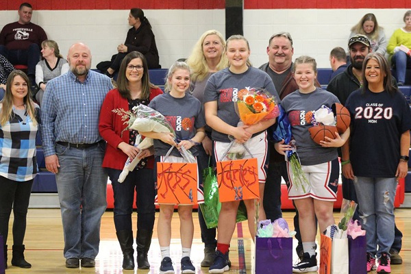 From left: Jayde Henry (31), Carley Lafary (23) and Jessica Smith (4) were honored as seniors at their last West Central home basketball game vs. Princeville on Monday evening, February 3, 2020.