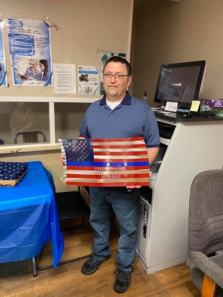 After the swearing in ceremony, a reception was held at the Sheriff's office welcoming Sheriff Seitz, and for the outgoing Sheriff Steven Haynes. As a token of appreciation, Haynes was given a beautifully engraved American flag sculpture.
