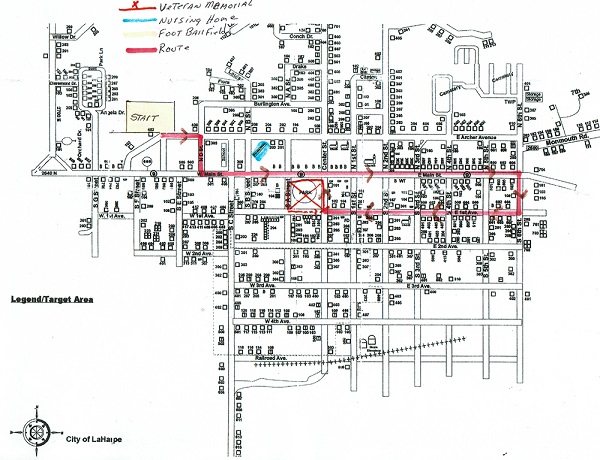 Ken Brown has the new route shown above for the Appreciation Cruise for this Saturday, August 1st. It's hard to believe July is almost over and the cruise will be this weekend! The lineup begins at 11:00 A.M. at the football field. Citizens, bring lawn chairs or line the route in your cars or go to the La Harpe City Park (marked with an X). Drivers of cars, we recommend to wear face mask if you get out of your car at the park, its not mandatory, your choice. Veterans will be at the Veterans Memorial taking donations for the Honor Flight. If you have a flag to wave, bring it. Let's show appreciation for all who organize, help, or participate.