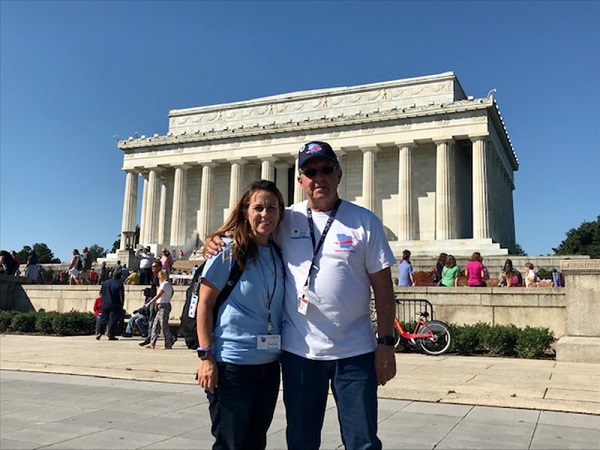 Ken Brown La Harpe with daughter Jolyn Brown Whitman of Blandinsville, his guardian on the 50th Quincy Honor Flight to Washington D.C. Sept. 2019.