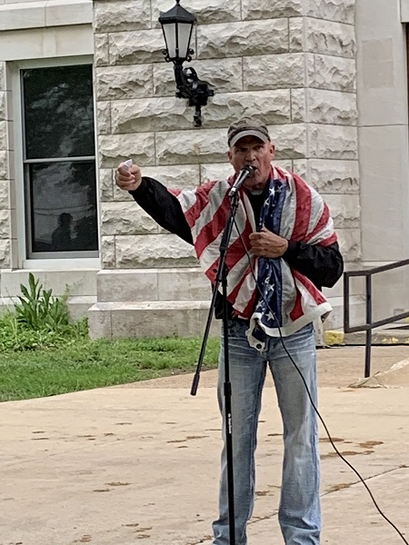 Teresa Link of La Harpe, speaking at a Rally to get businesses and functions open in Carthage