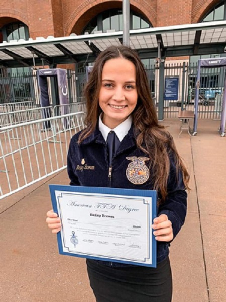 Bailey Brown, has received the FFA's highest degree achievable in the National FFA Organization - The American FFA Degree.