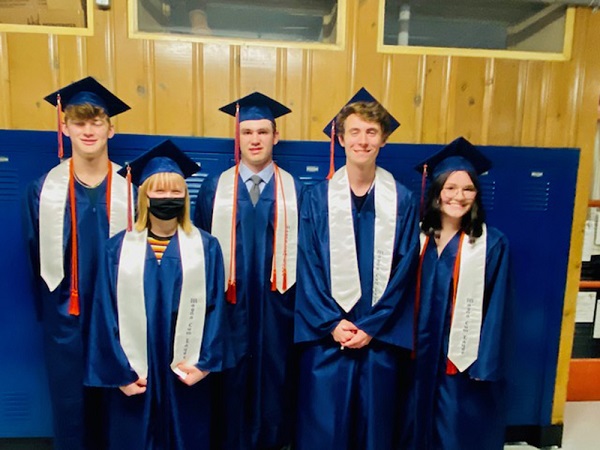 In the 2021 IWHS graduating class of 68 seniors, earning Magna Cum Laude (GPA of 3.75-3.89) are pictured from left: Cole Jackson, Jasmine LaVelle, Jackson Murphy, Eli Newton, and Anna Talley.