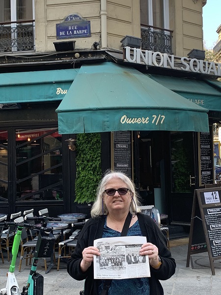 Bob Shutwell’s daughter Brenda Briney and husband Scott of Geneseo, "Took The Quill Along" when Brenda and Scott traveled to France. When Brenda was studying a map of Paris before leaving, she happened to see a street named Rue de La Harpe. It wasn’t far from Notre Dame in the Latin Quarter so they tracked it down and her husband captured this picture. (The street name is on a blue plaque above the awning).
