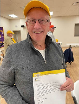 He was presented with a “Milestone Chevron Award” which can be attached to his Lion’s Pin.