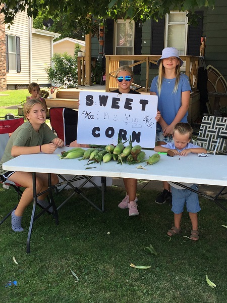 These kids have been working hard to reap the benefits! They pick the corn themselves in the humidity and heat, then remain outside selling it. They are a great addition to La Harpe and folks who love the taste of hot buttery sweet corn really appreciate it, too!