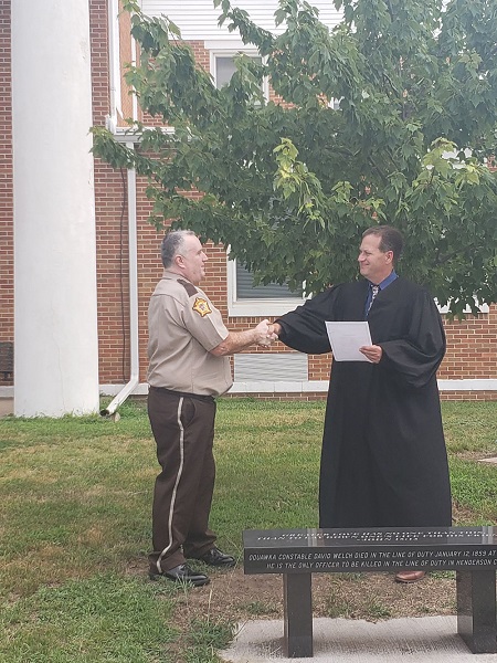 Steve Henshaw, democrat of Oquawka has been sworn in as Henderson County's new sheriff to replace Henderson County Sheriff Donald Seitz.