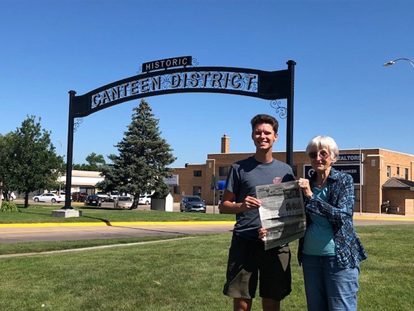 Virginia Ross, Stronghurst and Tom Moss, a student at Morningside University, Sioux City, Iowa, visited the Canteen District in downtown North Platte and took the Quill along. During WWII, troop trains would stop at the depot (the North Platte Canteen) where volunteers from Nebraska, Colorado and Kansas served food to hungry soldiers. If traveling west on I-80, stop just off the Interstate to see the extensive memorial to service men and women as well as Canteen workers. When you go on a trip, take "The Quill" along, and have your picture taken with it, and send it to us. Let's see where all "The Quill" can travel.