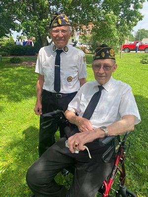 Many members of the La Harpe American Legion attended the 2022 Memorial Day Service at the La Harpe City Park last Monday. Four La Harpe Legion members served in WWII or the Korean conflict. Above are brothers in their 90s, Jerald Boyd, (left) and Glen Boyd (right) who attended.