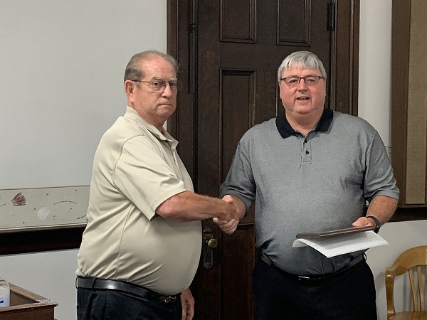 Dale Bolton received a plaque from the Hancock County Board honoring his 18 years of service to the county as Supervisor of Assessments. Bolton started in the position in 2001 and resigned in September of 2015. He returned to the post in 2018 to fill a vacancy and again resigned this spring.