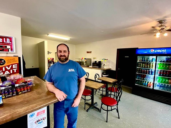His store size enables him to have a few of many items such as milk, bread, buns, salt cheese, pain relievers, mouthwash, bacon, eggs, frozen pizza, coffee, drinks, ice cream, chips, dip, butter, sour cream, even live bait for fishing.