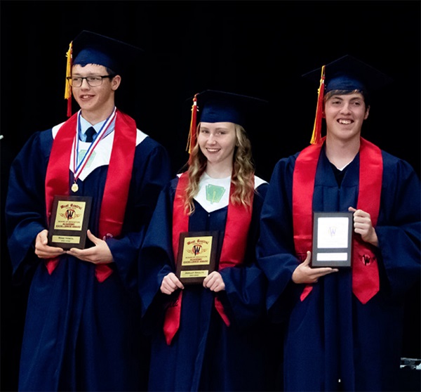 The Board Academic Achievement of Excellence Award (4.0) was given by West Central Board of Education President Mr. Brendan Schaley, to Class of 2022 Seniors: Ross Vancil, Ashley Shultz, and Chris Ford.