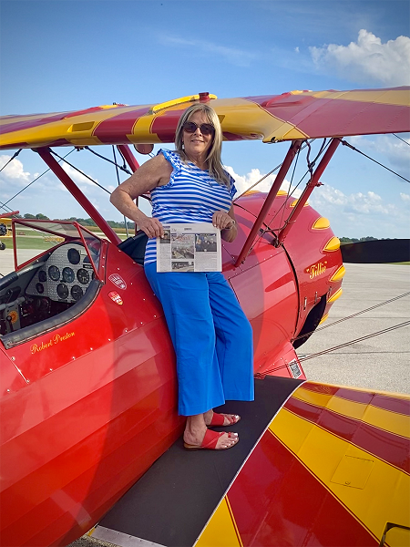 Dessa Rodeffer, of Stronghurst, took "The Quill" along to the 51st Annual National Stearman Fly-in in Galesburg Saturday, September 10, 2022 and took a daring ride in this beautiful World War Stearman "Tillie" owned by Robert Preston of Akron, Ohio. Preston, orginally from England, offers rides yearly at the Fly-in for a fee. This year he had black ribbons tied on his plane as a mark of respect to Queen Elizabeth who died two days prior, Thursday, September 8th, the same day as Dessa's 44 year old nephew Samuel Paul Bell. Sam was struck by a car while riding a bicycle in a designated bike lane in Chicago. Dessa had always put the opportunity of flying in a Stearman off for the next year, but sometimes you don't have a next year. She felt Sam was encouraging her to fly, so she said "yes"! After Preston explained why the ribbons were on his plane, she knew Sam was smiling and it was meant to be. It was exhilarating and beautiful from Galesburg to the Mississippi River and she even flew it back to the airport! When you go on a trip, take "The Quill" along and have your picture taken with it and send it to us. Let's see where all "The Quill" can travel.