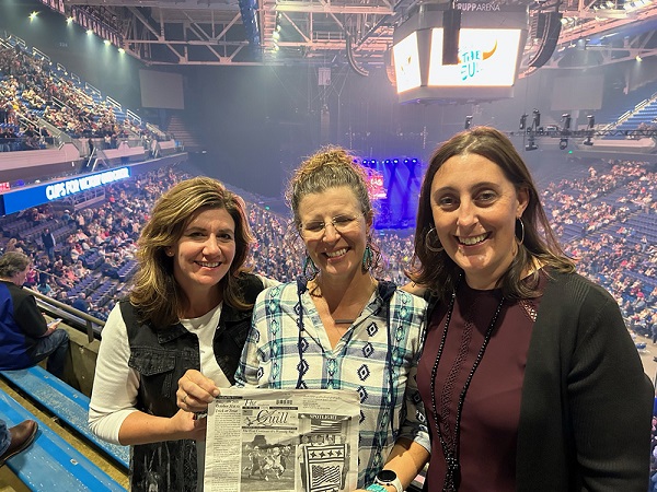 On Saturday, October 29th, Becca Ross Moss, N Platte, NE, formerly of Olena, Angie Brix, Champaign, IL, and Jill Eberle Eisenbarth, Chillicothe, IL, visited Lexington, KY, with the highlight attending the Judd concert at Rupp Arena. The former University of Illinois, Presby House roommates celebrated 30 years of friendship during the weekend and took the Quill along!